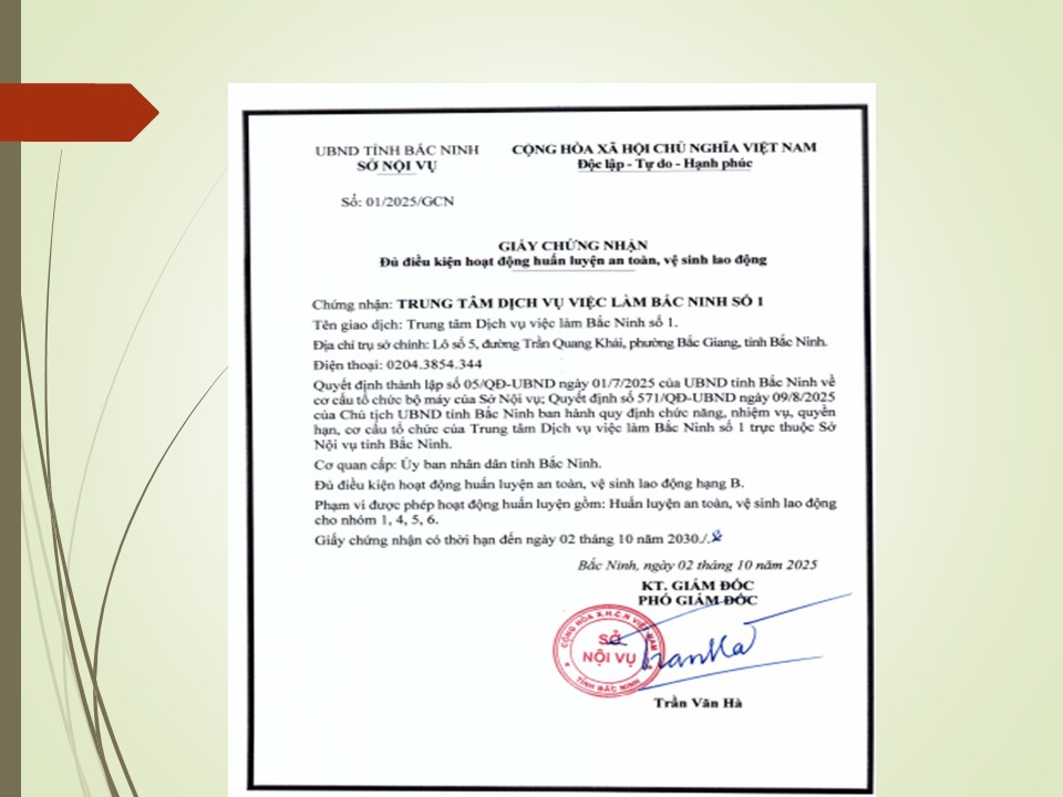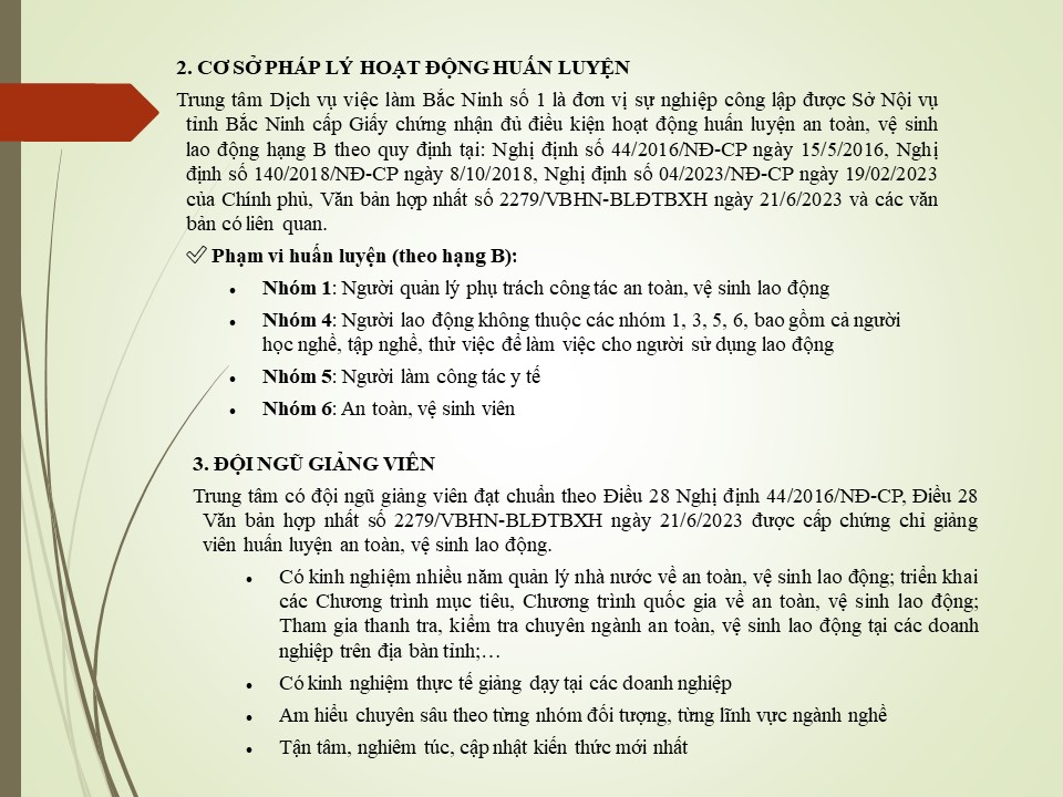 Trung tâm Dịch vụ việc làm Bắc Ninh số 1 thường xuyên tổ chức huấn luyện an toàn vệ sinh lao động